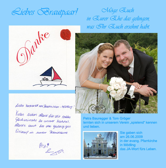 TOM und PETRA GRÖGER gaben sich am 26.06.2009 in der evang. Pfarrkirche in Mödling das JA-Wort fürs Leben.