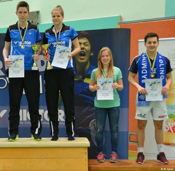 Somit mussten sich unsere Spieler/innen sowohl im Damendoppel (Malou Schaub/Bianca Schiester), als auch im Dameneinzel (Bianca Schiester), Mixeddoppel (Bianca Schiesster/Benjamin Schlemmer) und Herrendoppel (Benjamin Schlemmer/Ralph Bittenauer aus Pressbaum) mit Silbermedaillen zufrieden geben.