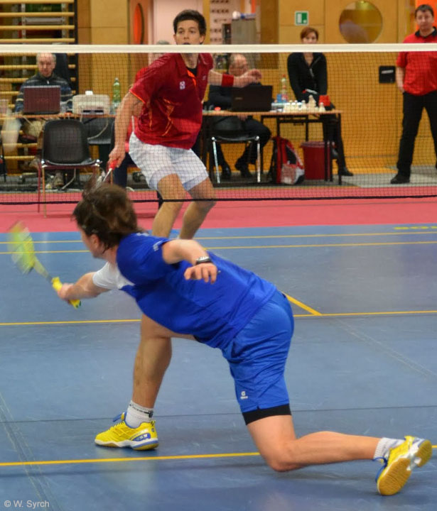 Christoph Syrch bekam es in der 1. Runde mit den Routinier und einstigen Spitzenspieler Heimo Götschl aus Jdenburg zu tun. Syrch zeigte eine gute Leistung und konnte nach hartem Kampf mit 21:16/13:21/21:13 siegen. Gegen seinen ehemaligen Doppelpartner Leon Seiwald aus Graz wirkte Syrch unkonzentriert und fehleranfällig. Ergebnis: 15:21/21:13/17:21.