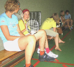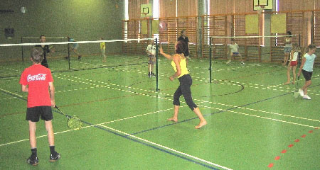 Dies ist zwar nur "Federball" und nicht "Badminton", den Kindern machte aber gerade das großen Spaß.