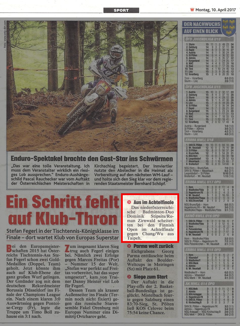 AUS IM ACHTELFINALE / Dominik Stipsits/Roman Zirnwald bei Finnish Open