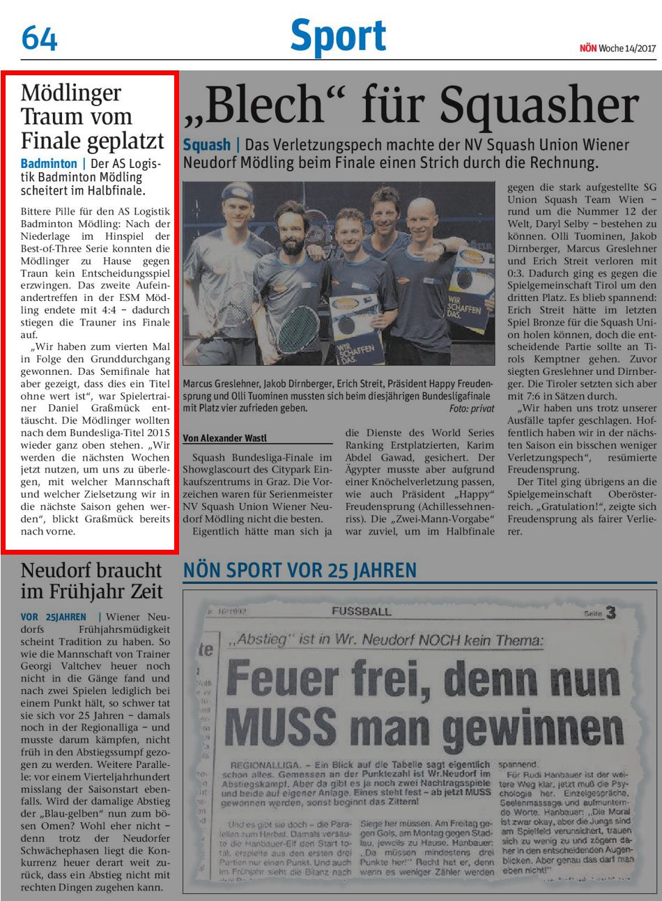 MÖDLINGER TRAUM VOM FINALE GEPLATZT / Der AS LogistikBadminton Mödling scheitert im Halbfinale