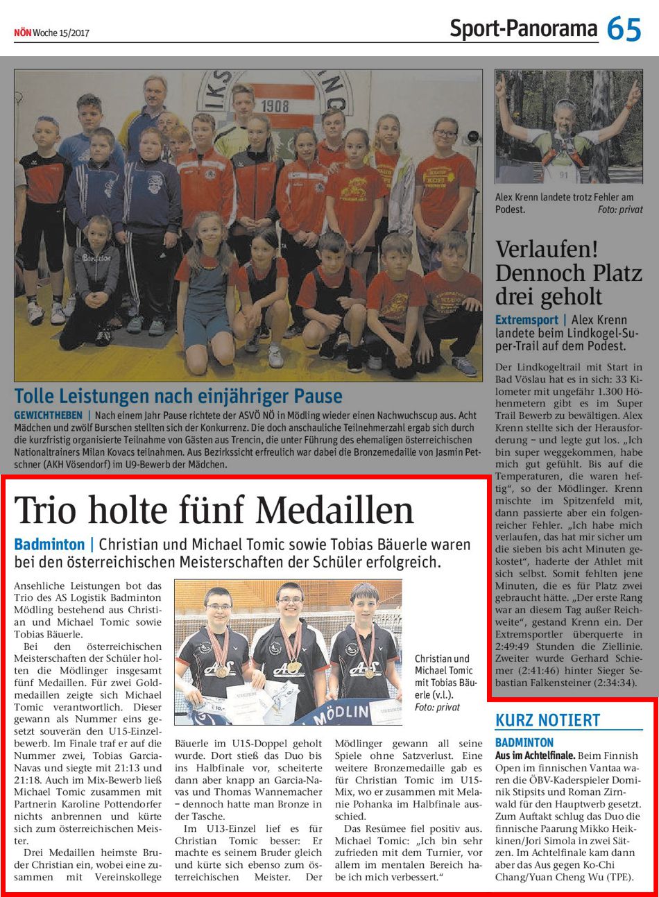 TRIO HOLTE FÜNF MEDAILLEN / Christian und Michael Tomic sowie Tobias Bäuerle waren bei den österreichischen Meisterschaften der Schüler erfolgreich.