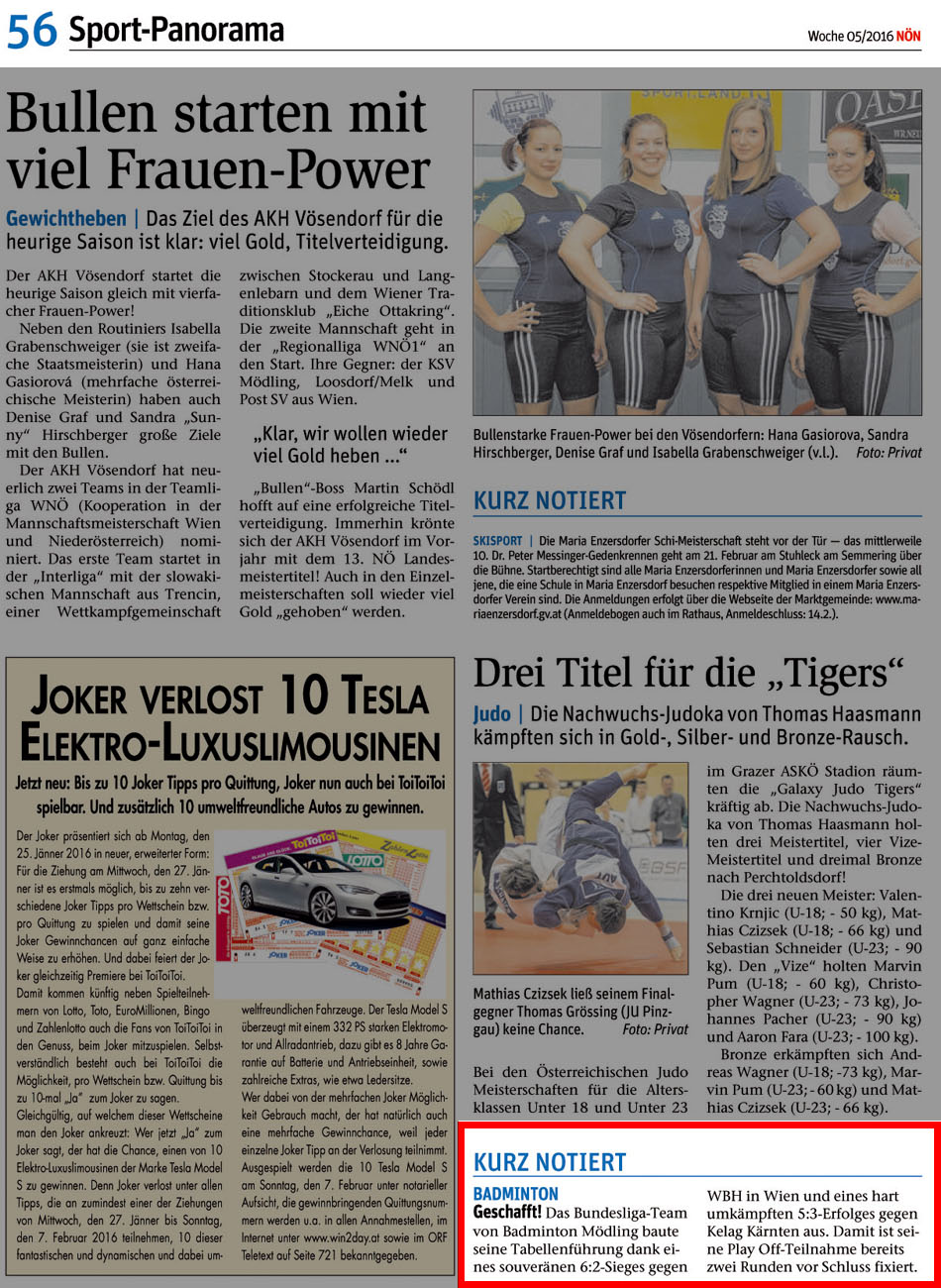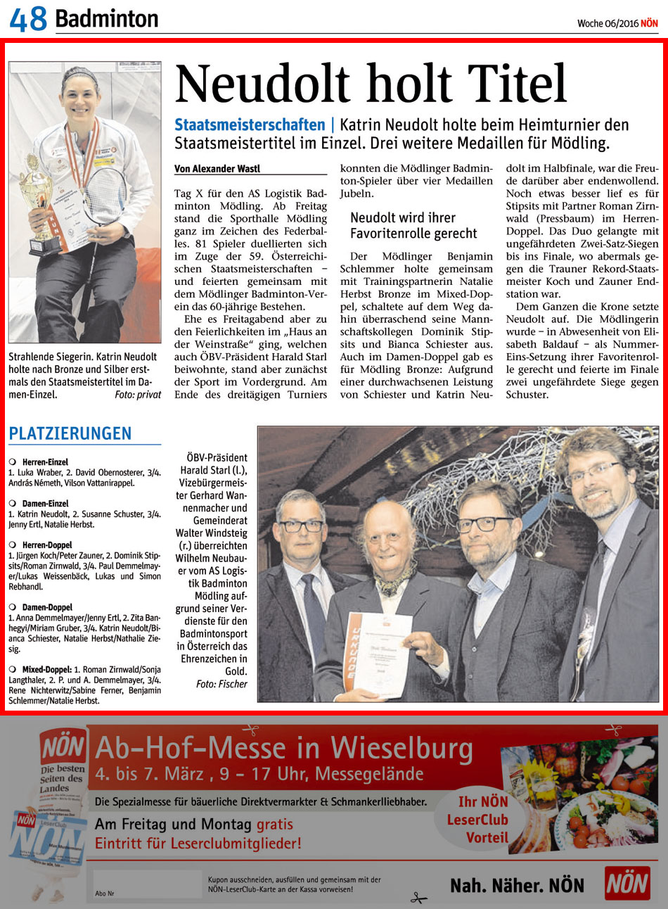 NEUDOLT HOLT TITEL / STAATSMEISTERSCHAFTEN - Katrin Neudolt holte beim Heinturnier den Staatsmeistertitel im Einzel. Drei weitere Medaillen für Mödling.