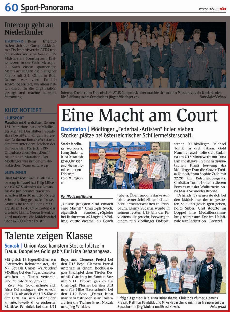 EINE MACHT AM COURT / Mödlinger "Federball-Artisten" holen sieben Stockerlplätze bei österreichischen Schülermeisterschaften.