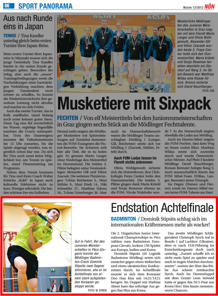 Bundesliga 2: Sieg für Mödling und 3. Jugend - Regionalturnier 2011/12