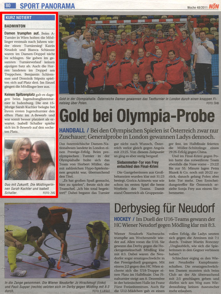 DAMEN TRUMPFTEN AUF / DD-Sieg für Schiester/Neudolt beim 2. A-Turnier in Wien