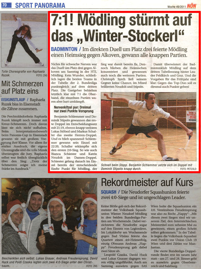 7:1! MÖDLING STÜRMT AUF DAS "WINTER-STOCKERL" / Im direkten Duell um Platz drei feierte Mödling einen Heimsieg gegen Alkoven, gewann alle knappen Partien.