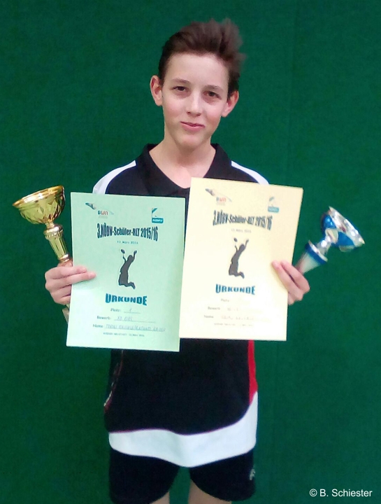 Im U15 Bewerb war Tobias Bäuerle eine Klasse für sich, er holte sich souverän und ohne Probleme den Sieg im Einzel. Auch in einem gemischten Doppelbewerb sicherte er sich mit seinem Partner Raphael Bauer aus Krems ohne Satzverlust den Titel.