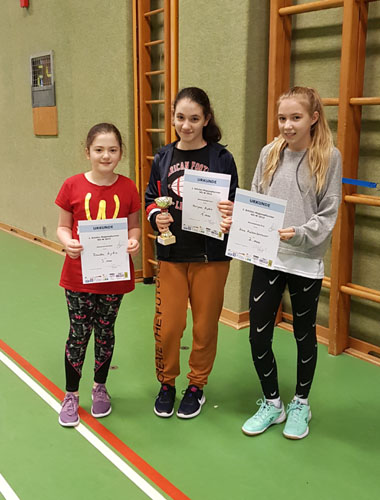 Bei den Damen wurde in einer Dreiergruppe gespielt. In dieser gewann jede ein Spiel, weswegen es aufs Satzverhältnis ankam. Hierbei stiegt Meryem Aydin (VRC) am besten aus, wodurch sie den Bewerb gewann. Zweiter wurde Nina Aschenbrenner (VRC) vor Rawda Aydin (VRC; welche eigentlich für den U13-Bewerb genannt war).
