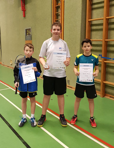 Es fanden sich insgesamt 14 Burschen und 3 Mädchen in der Halle ein. Gespielt wurde Herreneinzel U13 und Herreneinzel U15 sowie Dameneinzel U15. Aufgrund der geringen Nennungen in den Damenbewerben, wurde der U13 und der U15 Bewerb zusammengelegt.Im Herreneinzel U13 gewann Oliver Truchanowicz-Schwarz (VRC) jedes Spiel souverän ohne Satzverlust und konnte sich auch im Finale klar gegen Dorian Grundschober durchsetzen (WBH). Den dritten Platz belegte Lucas Pongratz (J. Stettner Badminton Mödling). Zuvor wurde Lucas Gruppenzweiter, nachdem er sich nur dem späteren Sieger geschlagen geben musste.