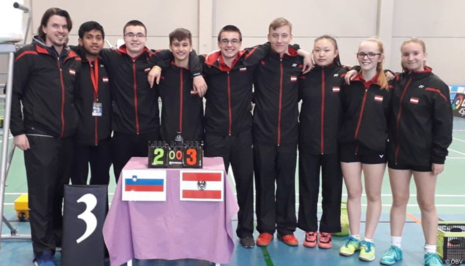 Im Teambewerb traf das Ö-Team in der Vorgruppe B auf Slowenien, Luxemburg und die Schweiz. Die Begegnungen werden in einem HE, DE, HD, DD und MIX.Gegen Slowenien holten Michael Tomic, Armin Sarosi/Christian Tomic und Kai Niederhuber (Neuhoven/OÖ)/Emily Wu (Pressbaum) zum 3:2-Sieg.