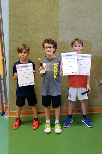 Leider fielen auch dieses Mal die Nennungen sehr gering aus. Aus diesem Grund wurden die Einzelbewerbe zu zweien zusammengefasst. Gespielt wurde gemischtes Einzel U11 sowie Herreneinzel U17. Der U11-Doppel-Bewerb wurde ebenso mit drei Paarungen gemischt gespielt. Im U17-Herrendoppel trafen vier Paarungen (aus den Altersklassen U13 bis U17) aufeinander.Im Einzel U11 konnte sich Lucas Lehner (Badminton Wiener Neustadt) ohne Satzverlust die