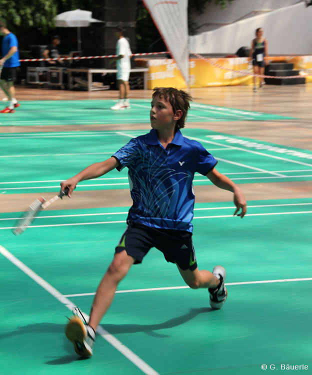 Michael Tomic und Tobias Bäuerle spielten im Einzelbewerb U13 HE in Gruppe A bzw. B, verzeichneten gegen die Inder Rogha Sahil und Lalwani Chirag Nicklesh jeweils einen Sieg mit 21:6/21:5 bzw. 21:8/21:13 und wurden Gruppendritte. Leider verpassten sie damit den Hauptbewerb.