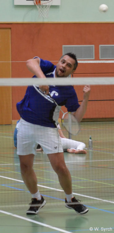Eine großartige Leistung zeigte Peter Todt gegen Melmer im zweiten Einzel. Nach verlorenem ersten Satz kamen die konditionellen Defizite des Gegners immer mehr zum Vorschein. Peter hingegen steigerte sich immer mehr und gewann verdient mit 17:21/21:16/21:7.