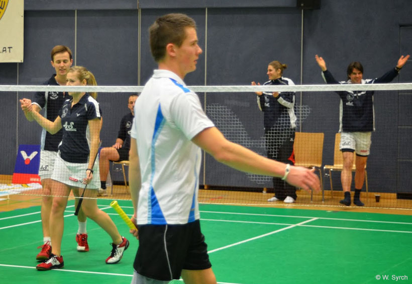 Am Samstag waren wir zu Gast in der Sporthalle Mollardgasse bei WBH Wien. Im Vorfeld der Begegnung sahen wir uns als krassen Außenseiter nachdem sich die Wiener mit dem Indonesier Adi Pratama in der Winterpause verstärkt hatten und zudem Kaliber wie den Engländer Matthew Nottingham in der Mannschaft haben. Mit einer mannschaftlichen Topleistung konnten wir in einem unglaublich spannenden Spiel dennoch siegreich bleiben und sogar die Tabellenführung zurückerobern. Der Schlüssel zum Erfolg lag in den drei Spielen mit Damenbeteiligung die alle gewonnen werden konnten. Außerdem zeigten wir in allen drei 3-Satzpartien des Tages die besseren Nerven und konnten diese für uns entscheiden. Besonders stark war das Mixeddoppel Dominik Stipsits und Katerina Tomalova die gegen den Ex-Jugendeuropameister Matthew Nottingham mit Michaela Mathis im entscheidenden Spiel den Sieg in drei Sätzen sicher stellen konnten.