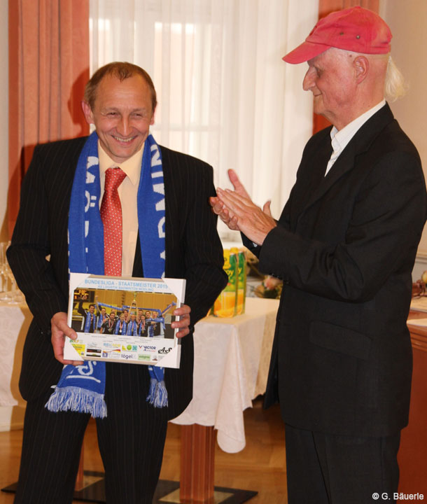 Zu guter letzt ehrte Neubauer seinen Freund und Weggefährten Ernst Liska/Fa. LuxBell., den er bereits seit Kindesbeinen kannte. Liska/Neubauer gründeten 2003 gemeinsam den Verein Badminton Mödling. Liska hat nicht nur den Verein als Obmann geleitet, sondern ihn auch erheblich finanziell unterstützt.