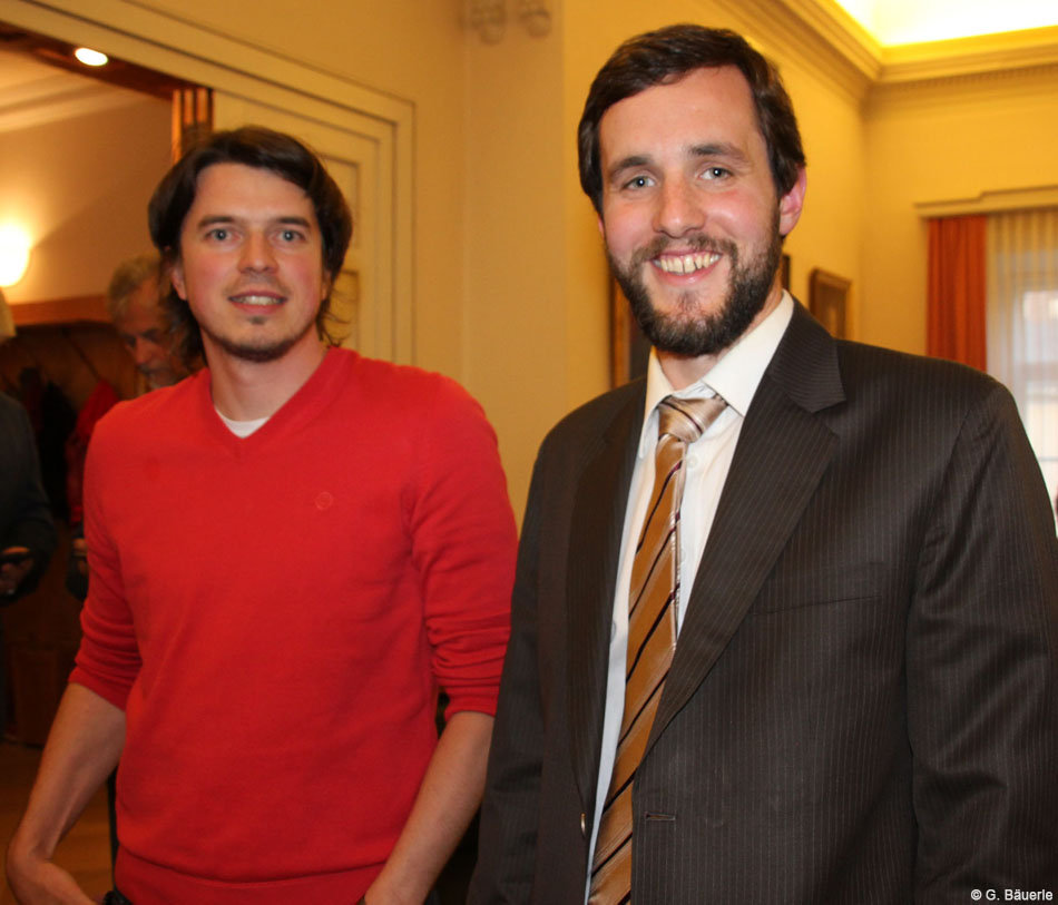 Der frischgebackene Obmann Lukas Stöberl bedankte sich bei Bürgermeister Hrn. Hans Stefan Hintner für die von der Stadt Mödling organisierte Veranstaltung zu Ehren unserer Staatsmeister-Mannschaft.