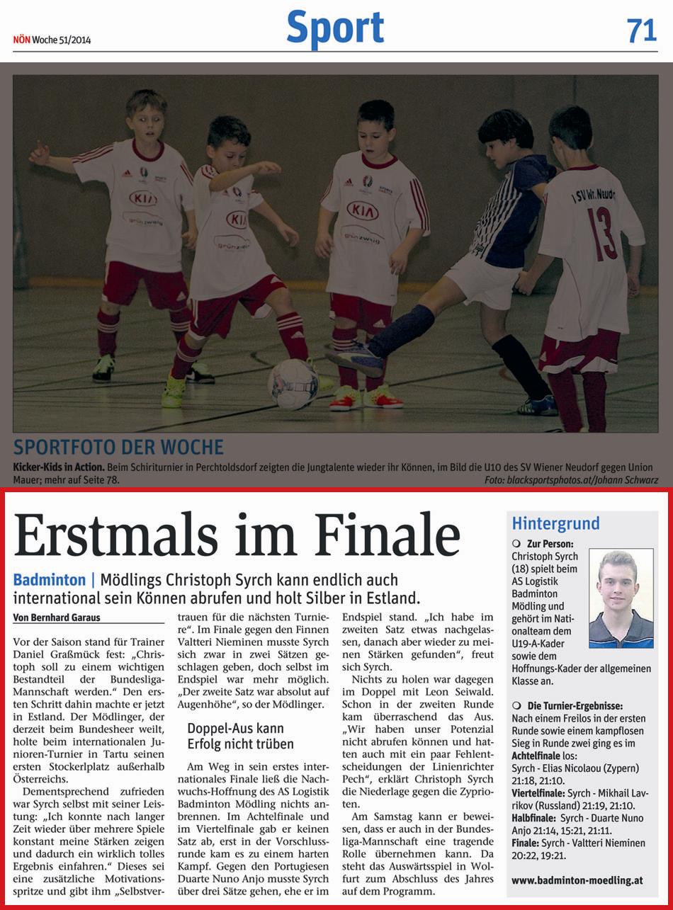 ERSTMALS IM FINALE / Mödlings Christoph Syrch kann endlich auch international sein Können abrufen und holt Silber in Estland