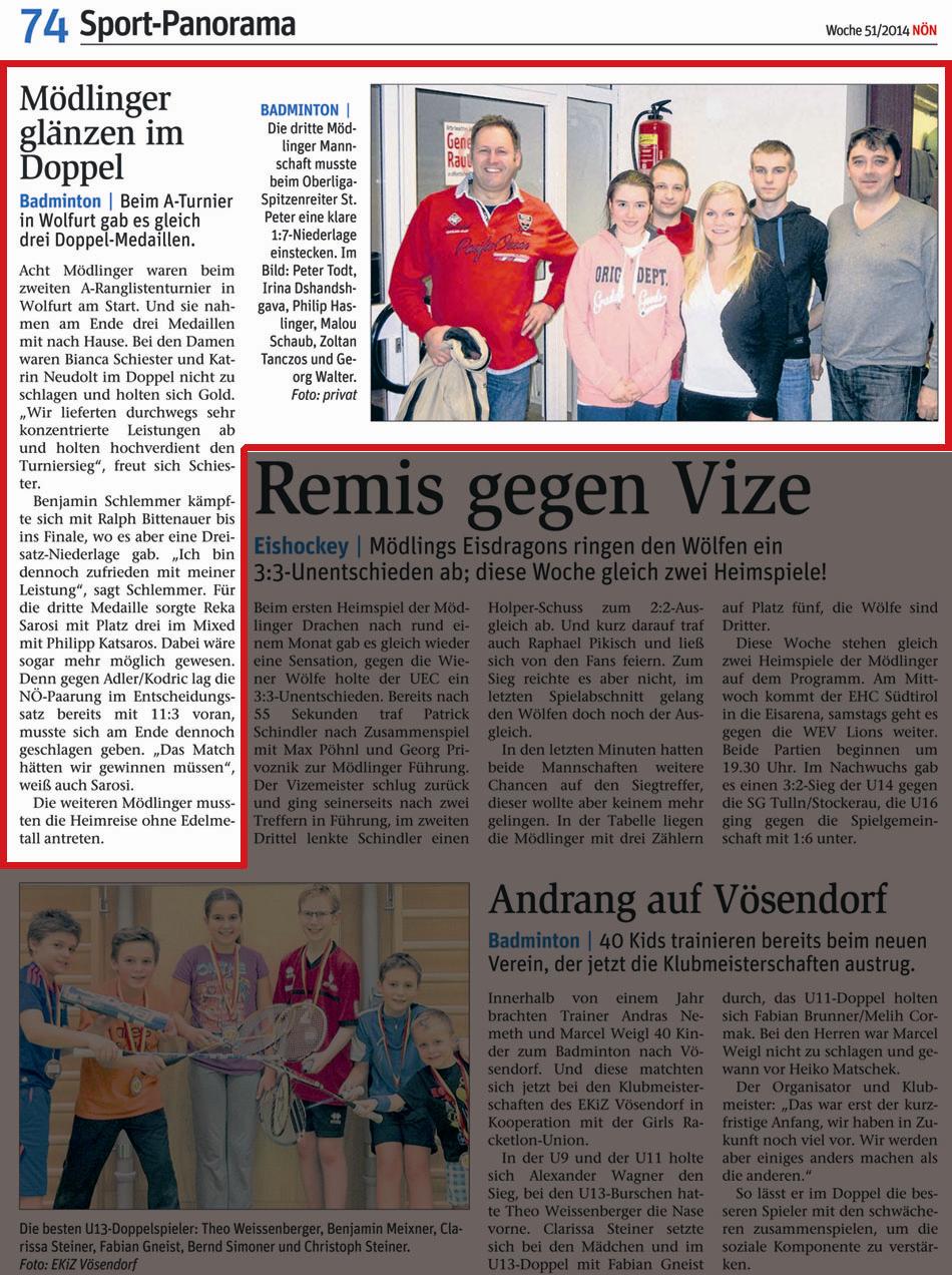 MÖDLINGER GLÄNZTEN IM DOPPEL / Beim A-Turnier in Wolfurt gab es gleich drei Doppel-Medaillen.