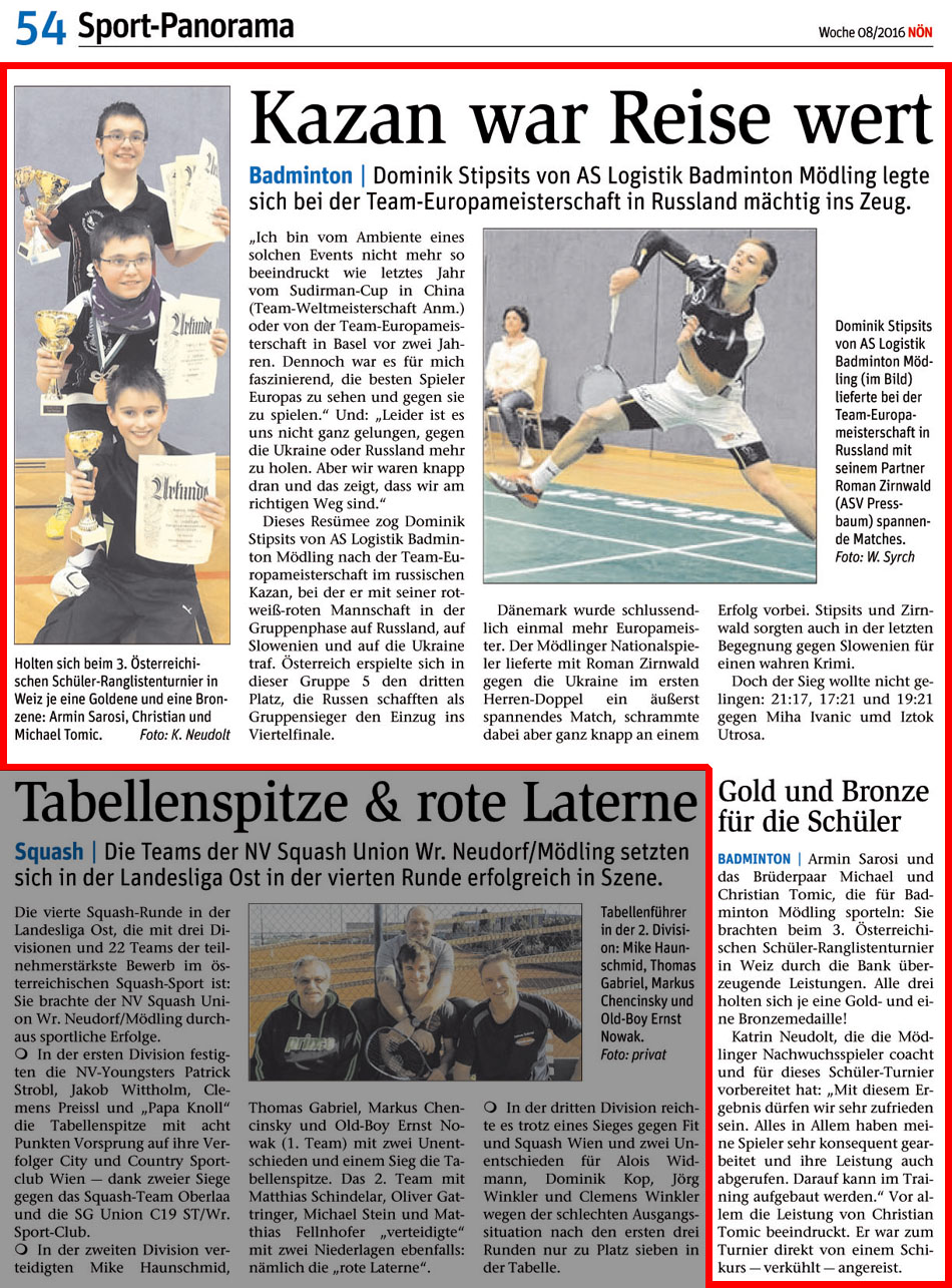 / Dominik Stipsits von AS Logistik Badminton Mödling legte sich bei der Team-Europameisterschaft in Russland mächtig ins Zeug.