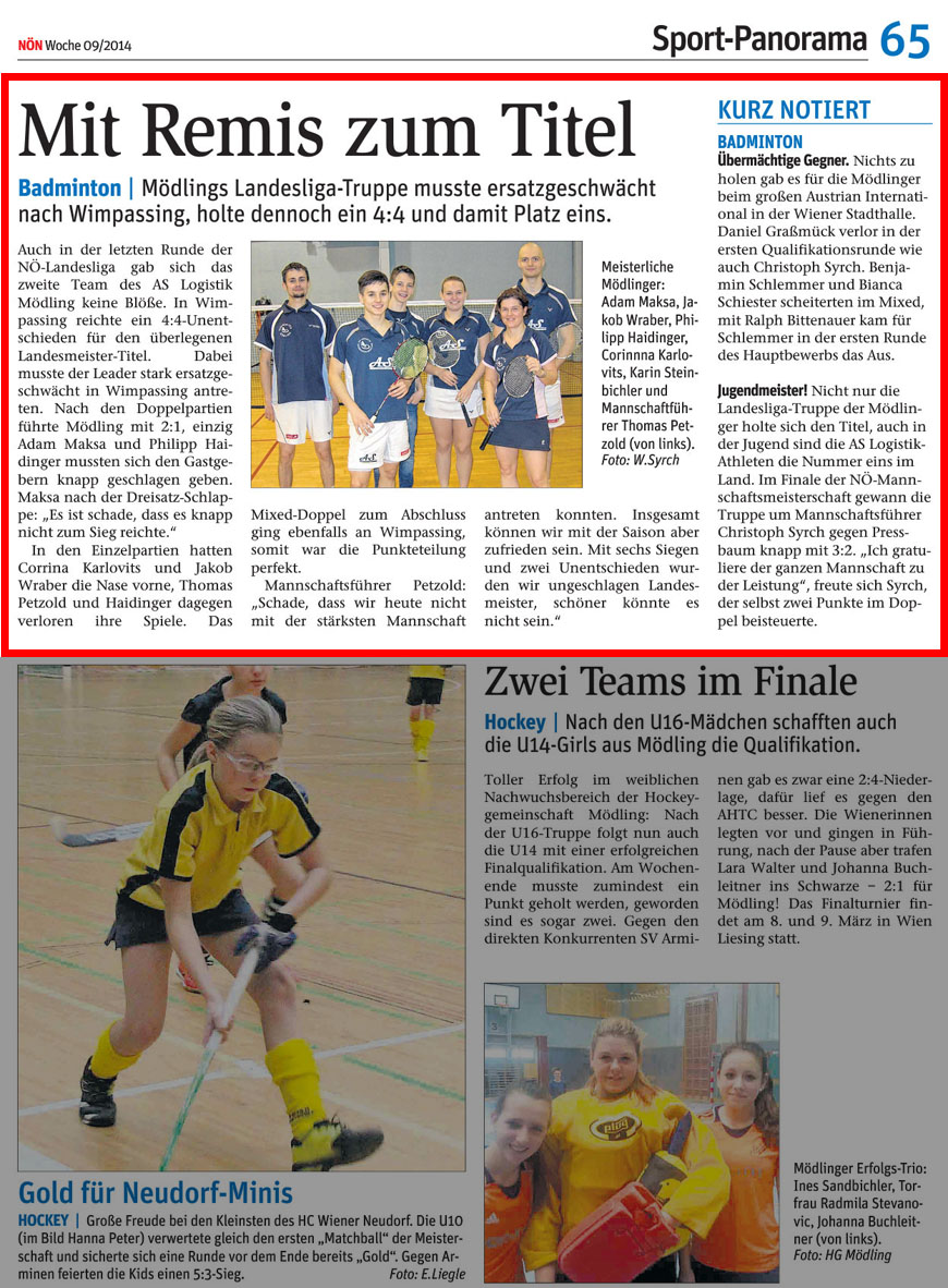 Aus Mödling nahmen Daniel Graßmück und Katrin Neudolt teil. Beide waren im Hauptbewerb spielberechtigt.