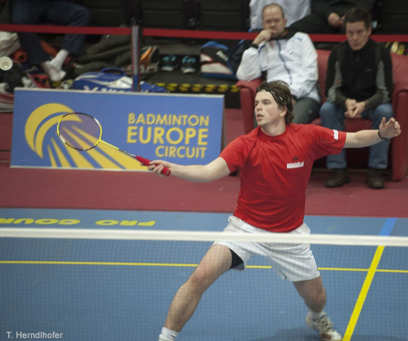 Gegen den Deutschen Florian Kaminski musste der Mödlinger in einem einstündigen Kampf seine Kondition und Ausdauer zeigen und hatte mit 16:21/21:18/21:17 das bessere Ende für sich.
