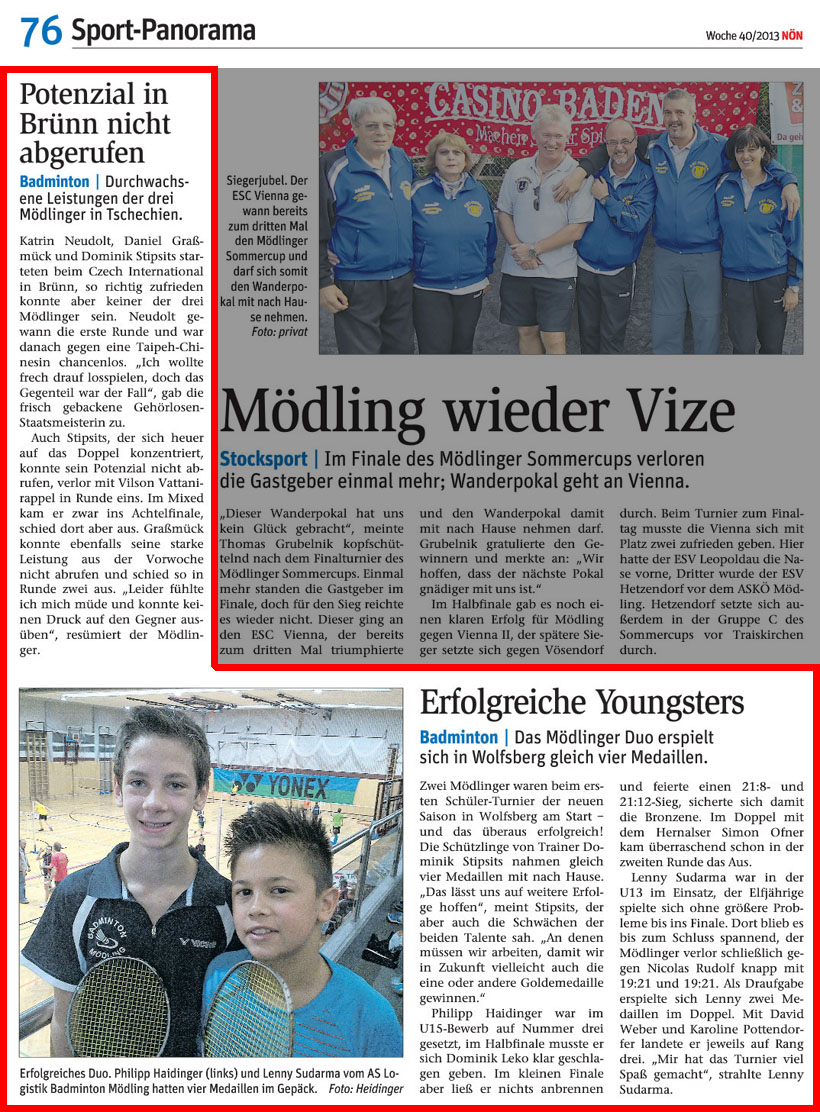 Daniel Graßmück musste im HE in die Quali und schied leider im Finale aus. Im Doppel der Hauptrunde musste der Mödlinger mit seinem Partner Roman Zirnwald in der 1. Runde ausscheiden.