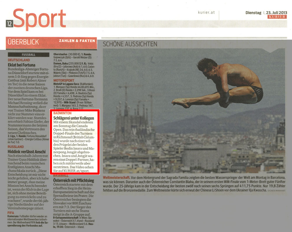 SCHLÄGEREI UNTER KOLLEGEN / Gut, dass es Negativ-Schalgzeilen gibt. Sonst würde in den Tageszeitungen noch weniger über Badminton stehen. Hier das Video.