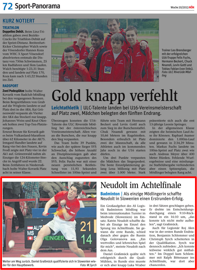 An dem Internationalen Turnier nahmen 189 Athleten und Athletinnen aus ganz Europa teil. Aus Mödling reisten Daniel Graßmück, Benjamin Schlemmer, Katrin Neudolt und Christoph Syrch an.