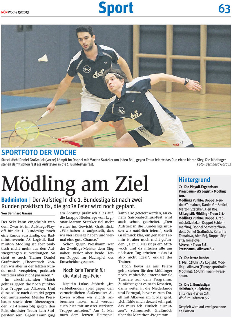 MÖDLING AM ZIEL / Der Aufstieg in die 1. Bundesliga ist nach zwei Runden praktisch fix, die große Feier wird noch geplant.