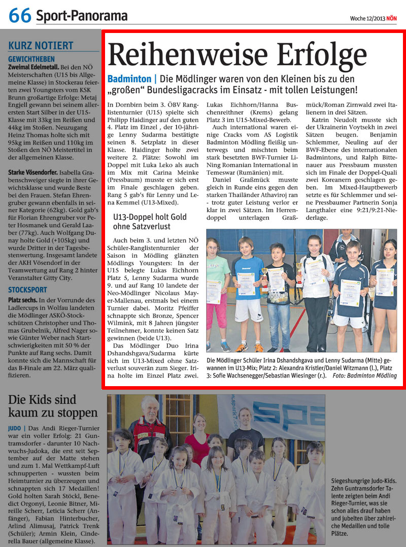 Von 23.3.-24.3. fand in der Fritz-Grassinger-Sporthalle in Wien das 3. A-Ranglistenturnier der Saison statt. Für Mödling reichte es zu zwei 2. Plätzen durch Katrin Neudolt und Marton Szatzker. Weiters waren Bianca Schiester, Lukas Stöberl, Benjamin Schlemmer und Thomas Petzold am Start.