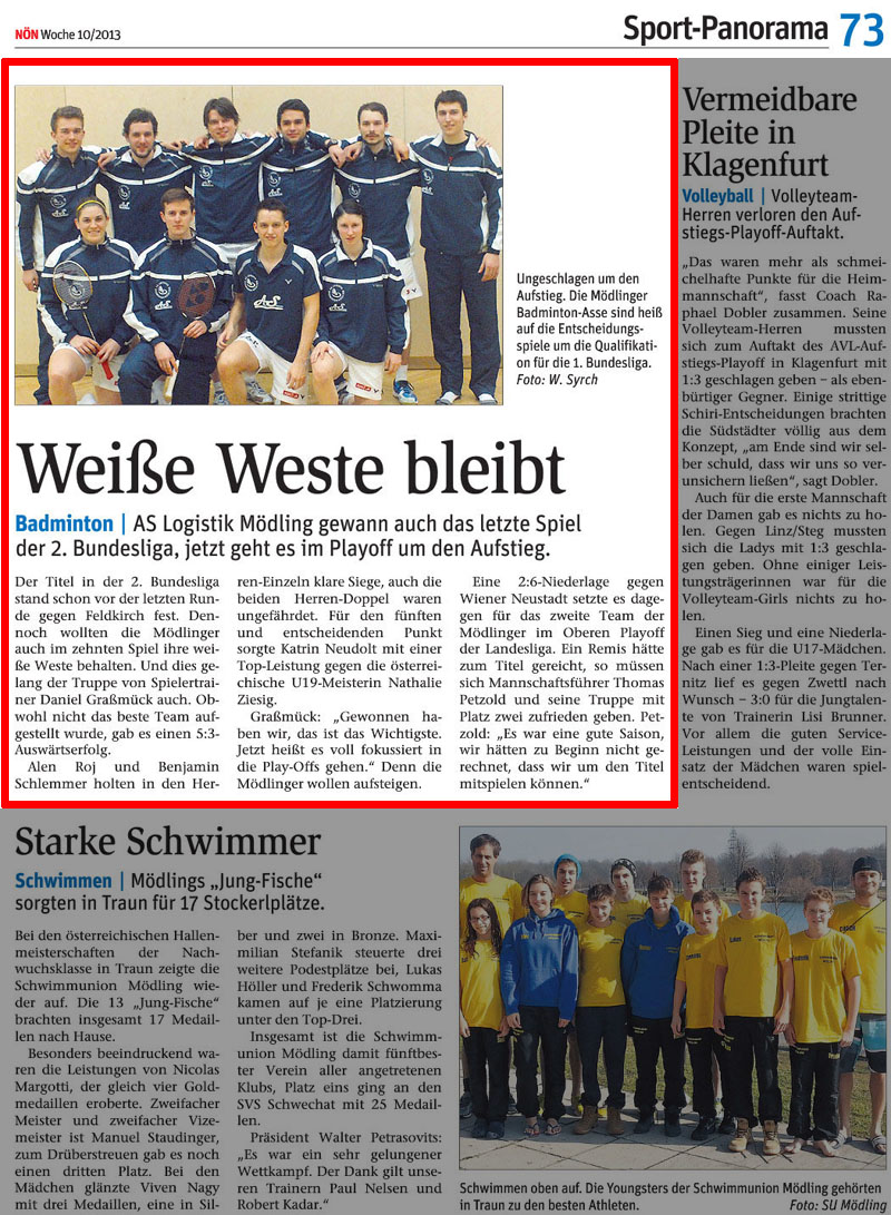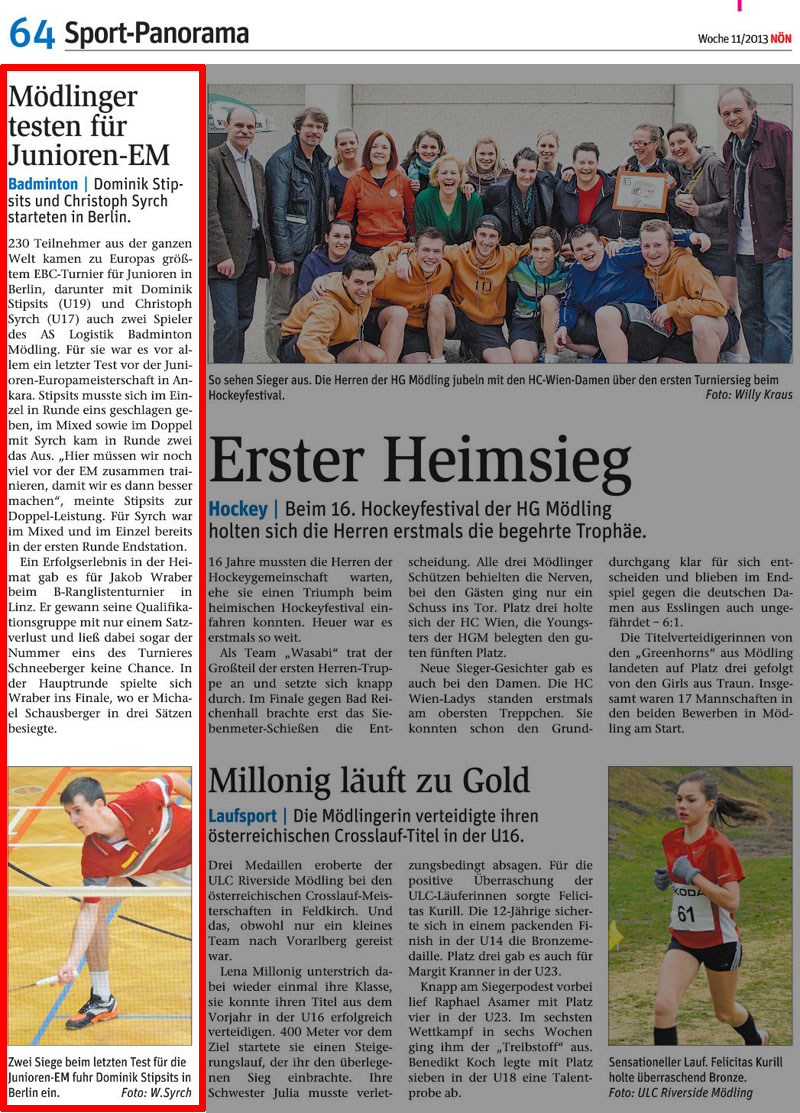An dem Turnier, das am 09.+10.03.2013 statt fand, nahmen 33 Athleten und 16 Athletinnen teil. Von AS Logistik Badminton Mödling reiste Jakob Wraber an.