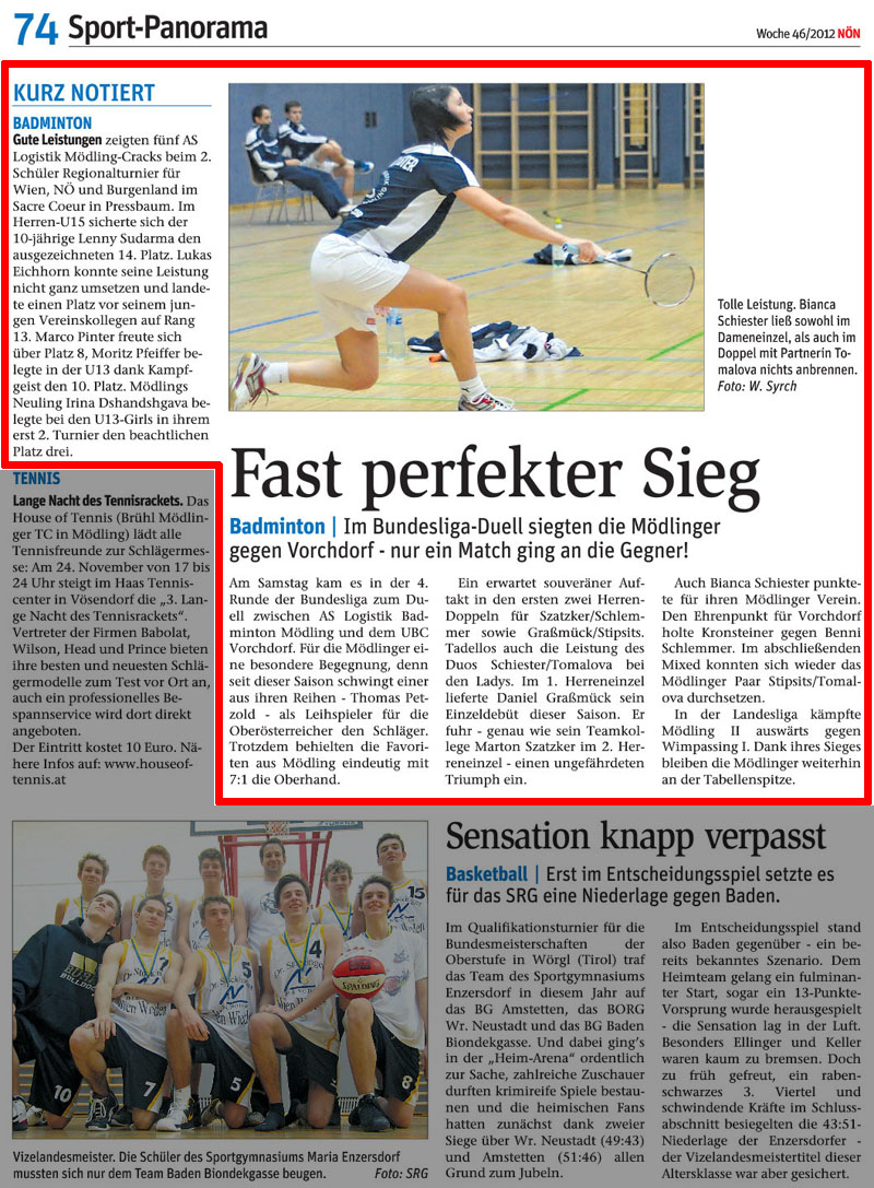 Beide HD konnten durch Dominik Stipsits/Christoph Syrch und Lukas Stöberl/Thomas Petzold klar gewonnen werden, nachdem Rüdiger Gnedt für das HE und das MIX aufgestellt wurde. Die Rechnung ging auf.