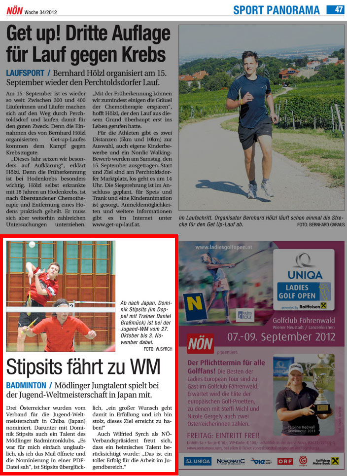 STIPSITS FÄHRT ZUR WM / Mödlinger Jungtalent spielt bei der Jugend-Weltmeisterschaft in Japan mit.