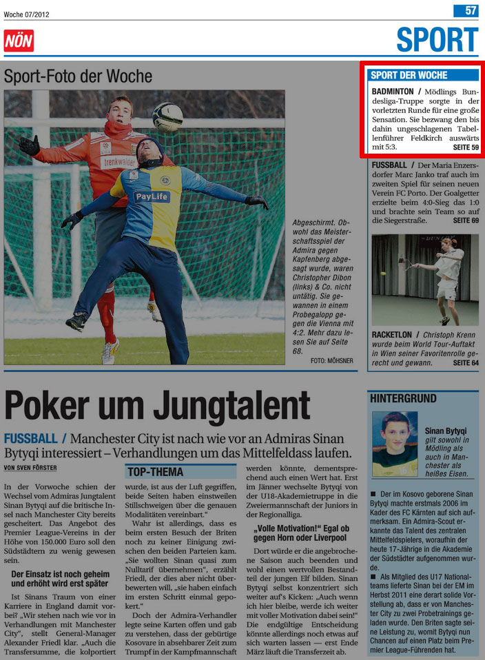In den beiden Auswärtsspielen der 12. und 13. Runde setzte es für AS Logistik Badminton Mödling eine bittere 3:5 Niederlage gegen den Tabellen 6ten Vorchdorf. Einen Tag später wurde diese Enttäuschung durch einen 5:3-Sieg gegen Tabellenführer und vorzeitigen Meister BC Feldkirch wettgemacht.