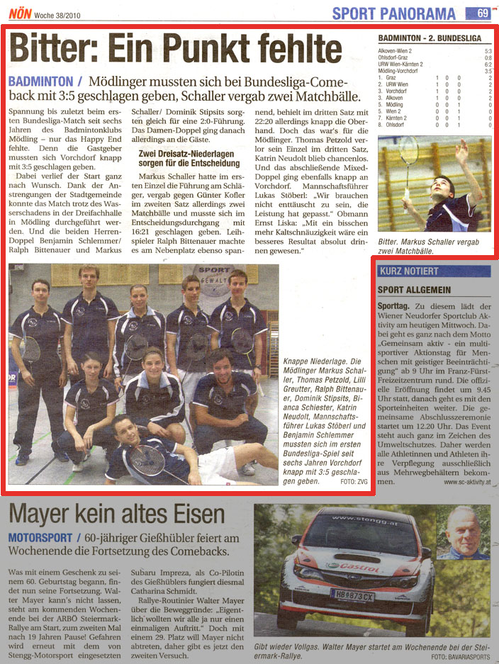 Am 26.09.2010 wurde das 1. D-Ranglistenturnier NORD in Mödling ausgetragen.