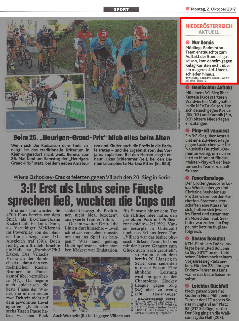 Am Sonntag, 01.10.17, fand die erste Runde der Badminton Bundesliga statt. Unser Gegner in der heimischen Europahalle war Aufsteiger kelag Kärnten, die sich für die neue Saison mit vielen Ausländern verstärkt haben.