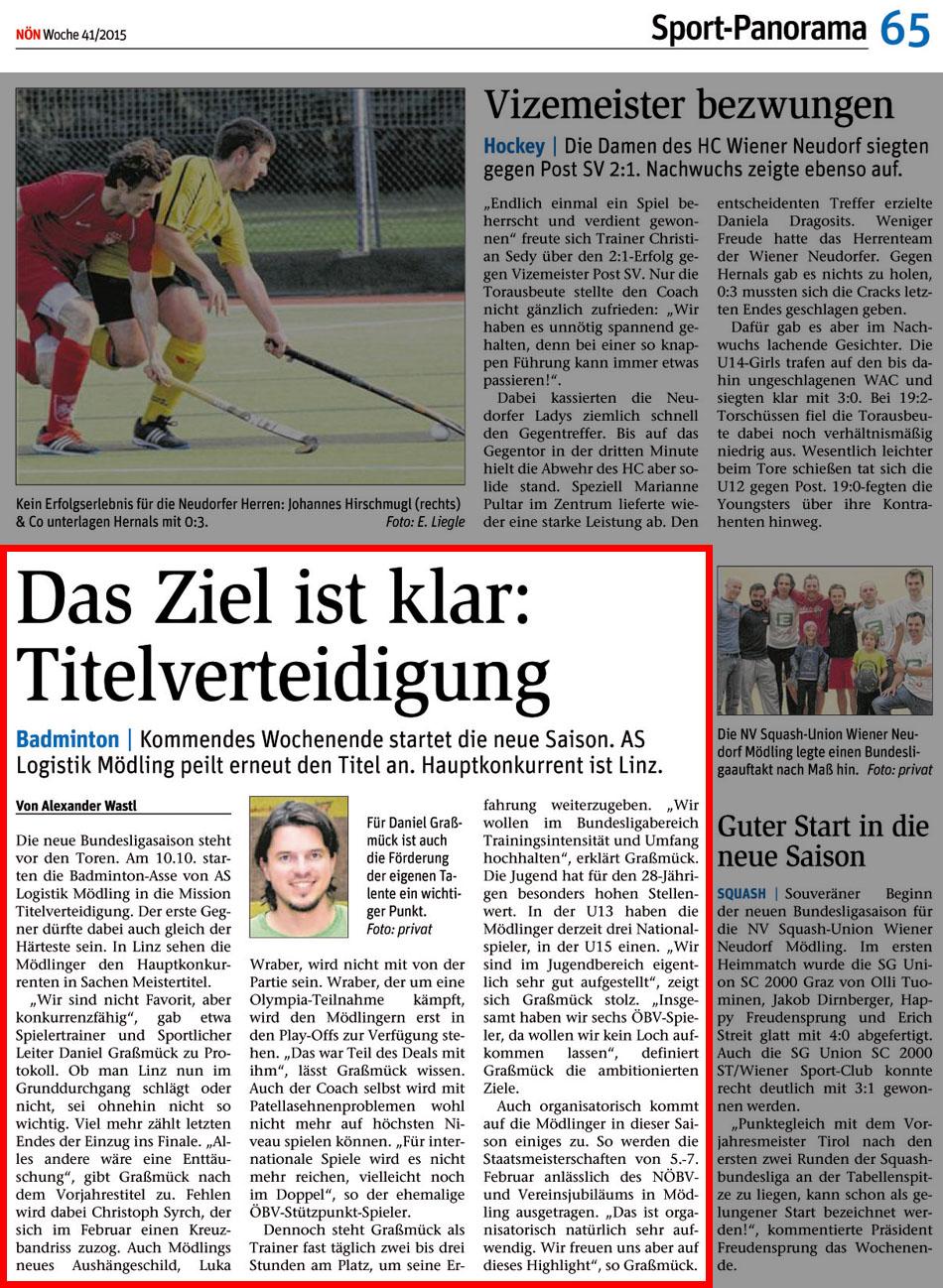 EIN ZIEL IST KLAR: TITELVERTEIDIGUNG / Kommendes Wochenende startet die neue Saison. AS Logistik Mödling peilt erneut den Titel an. Hauptkonkurrent ist Linz.