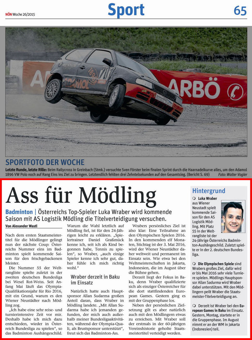 Nach dem großartigen Erfolg von AS Logistik Badminton Mödling, dem in der 60-jährigen Vereinsgeschichte erstmals errungenen Staatsmeistertitel in der abgelaufenen Saison 2014/15, ist dem Verein unter tatkräftiger Unterstützung des Hauptsponsors AS Logistik GmbH Allan Sudarma ein weiterer Coup gelungen.