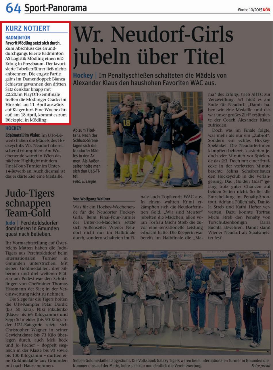 Am Regionalturnier am 28.02.2015 in Wr. Neustadt nahmen 50 Schüler, davon 17 Schülerinnen der Altersklassen U13 und U15 teil. Aus Mödling reisten 3 Schüler an. Armin Sarosi wurde über Nacht krank und musste leider passen. Das Turnier dient zur Quali für das Österr. Ranglistenturnier am 14.03.2015 in Weiz.