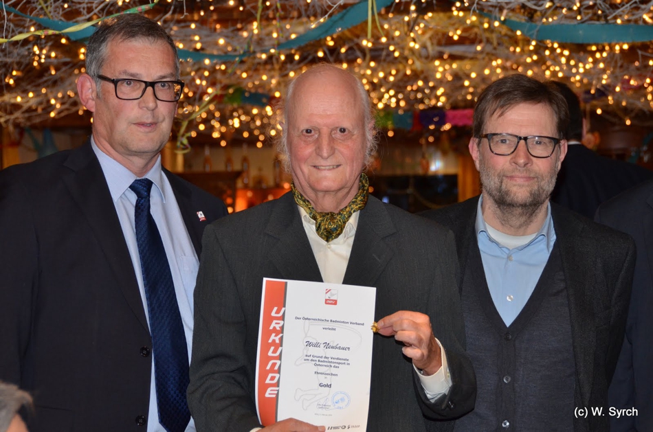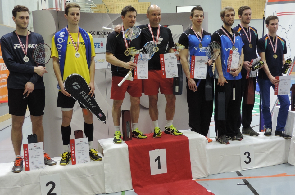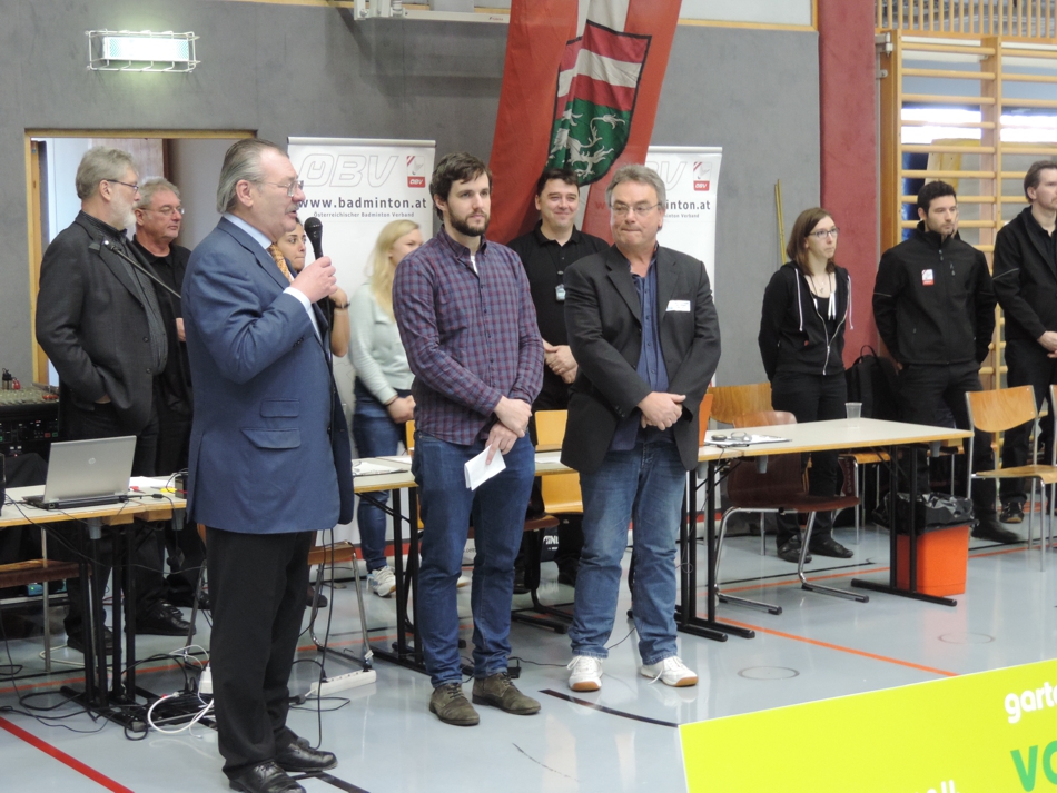 Am Schluss des offiziellen Programmes, bedankte sich ÖBV-Präsident Harald Starl beim AS Logistik Badminton Mödling für die reibungslose Durchführung der Staatsmeisterschaften und verlieh im Anschluss daran Daniel Graßmück, Ernst Liska (jeweils Silber), Adam Maksa (Bronze) und Willi Neubauer (Gold) Ehrenzeichen des ÖBV.