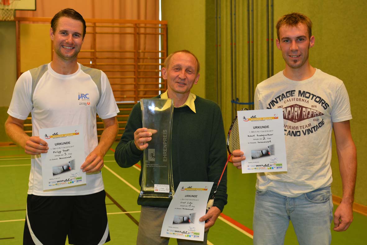 1 C RLT OST Sieger HE2Im Herreneinzel blieb unser Lokalmatador Ernst Liska (AS Logistik Badminton Mödling) ungeschlagen und holte sich somit seinen ersten Sieg eines C-Turniers. In einem spannenden Finale konnte er sich in 3 Sätzen gegen Michael Buschenreithner (FZSV Ybbs) durchsetzen. Im Spiel um Platz 3 siegte Philipp Fendt (Union VRC Badminton) gegen Erik Gebeshuber (BC Donaustadt).