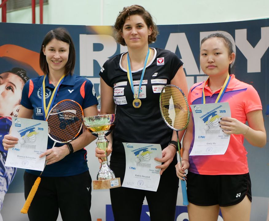 Im Dameneinzel Allg. Klasse dominierte Katrin Neudolt nach Belieben. Sie musste keinen Satz abgeben. Nach Siegen über Katrin Mailer (St. Pölten), Emily Wu (Pressbaum) und Vereinskollegin Bianca Schiester stand sie verdient als Landesmeisterin fest. Bianca kämpfte sich gegen Carina Meinke (Pressbaum) ins Finale und holte Silber.