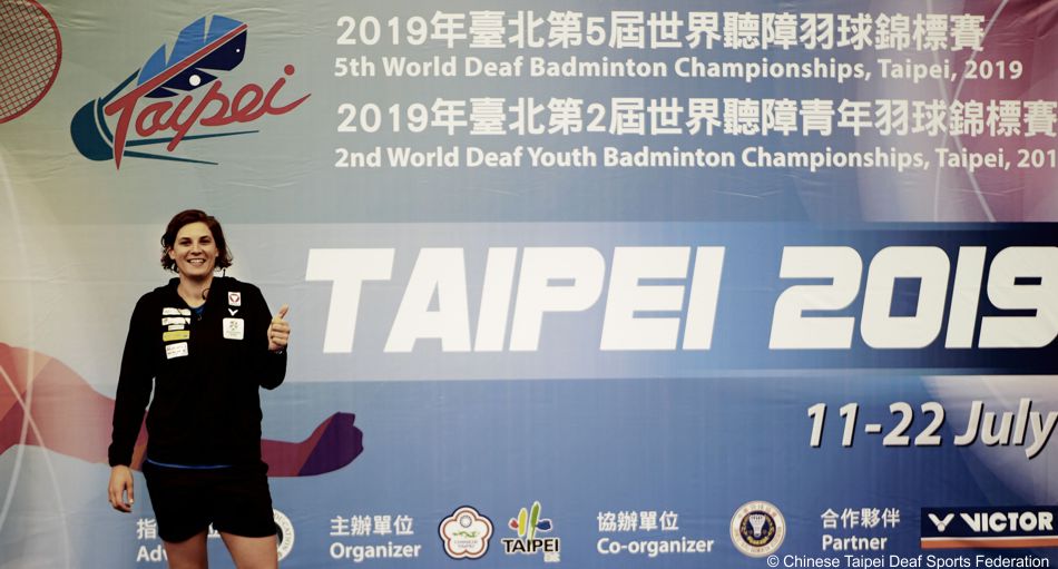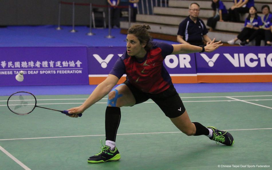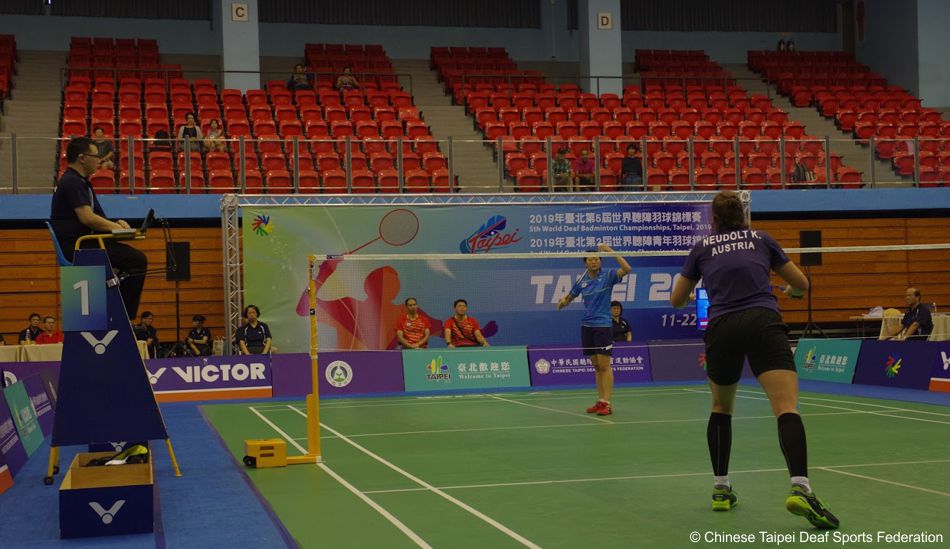 Nach einer langen und intensiven Vorbereitung in den letzten Tagen durfte Katrin heute endlich ins Turnier starten. Insgesamt nehmen bei der 5. Deaf-WM 72 Damen und 88 Herren aus 34 Ländern teil. Katrin wurde in die Gruppe B gemeinsam mit Chiao-Yu Chiang (TPE) und Hairunnisa Badrun (INA) gelost.