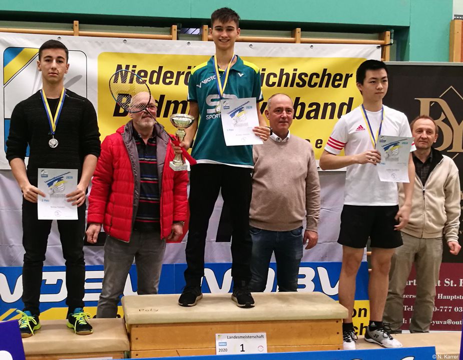 Der 15-jährige Armin Sarosi trat im U19 HE-Bewerb an und holte sich sensationell den Landesmeistertitel. Er gab keinen einzigen Satz ab und erzielte deutliche Siege. Im gleichen Bewerb belegte Justin Sundara den 3. Platz, nachdem er durch seinen Vereinskollegen Armin Sarosi besiegt wurde. Julian Zöschg belegte den undankbaren 4. Platz.