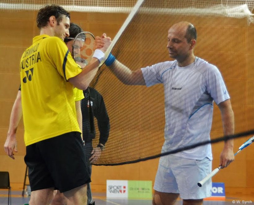 Christoph Syrch bekam es in der 1. Runde mit den Routinier und einstigen Spitzenspieler Heimo Götschl aus Jdenburg zu tun. Syrch zeigte eine gute Leistung und konnte nach hartem Kampf mit 21:16/13:21/21:13 siegen. Gegen seinen ehemaligen Doppelpartner Leon Seiwald aus Graz wirkte Syrch unkonzentriert und fehleranfällig. Ergebnis: 15:21/21:13/17:21.