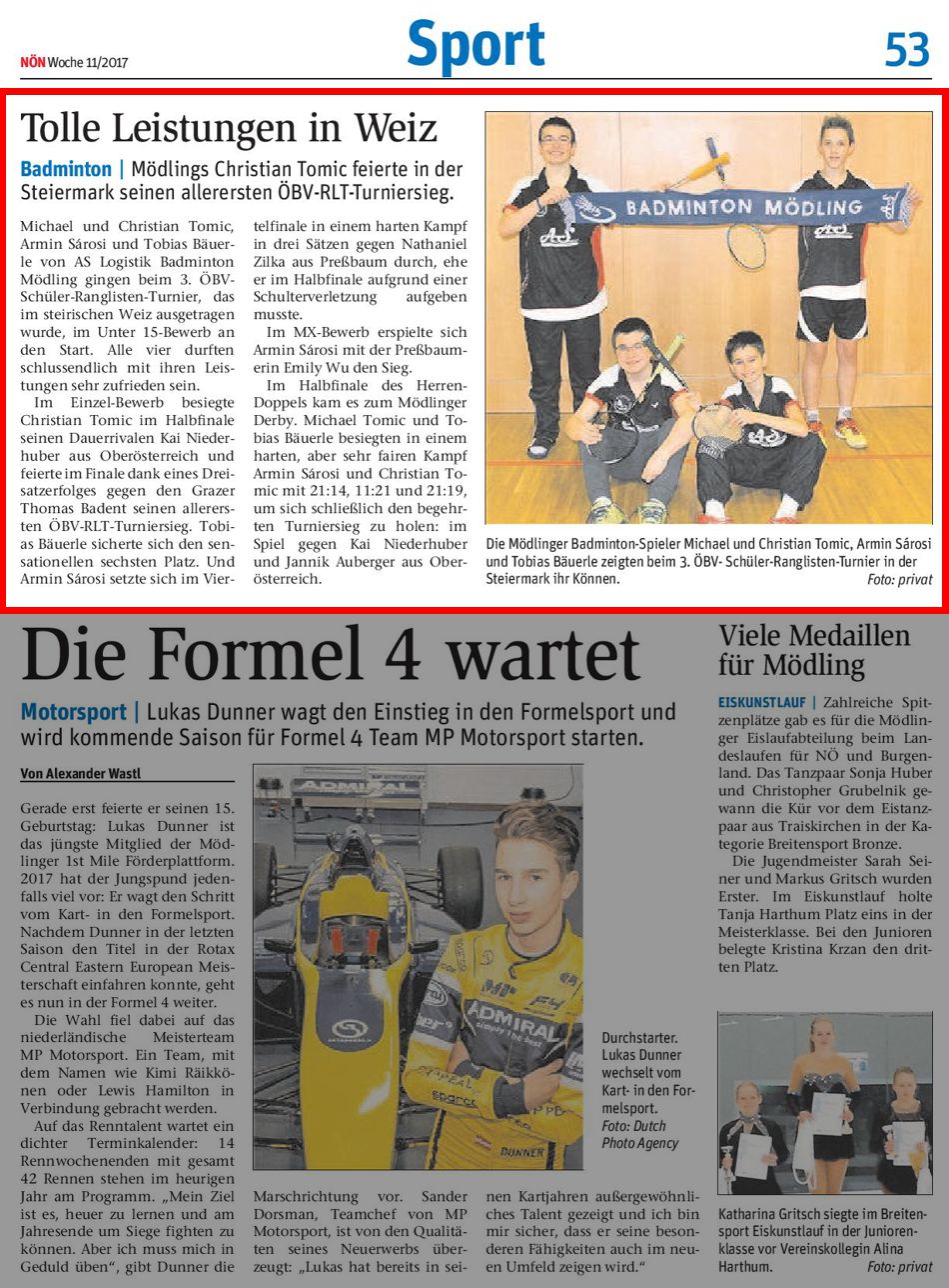 TOLLE LEISTUNGEN IN WEIZ / Mödlings Christian Tomic feierte in der Steiermark seinen allerersten ÖBV-RLT-Turniersieg.