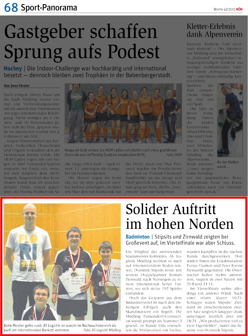 SOLIDER AUFTRITT IM HOHEN NORDEN / Stipsits uns Zirnwald zeigten bei Großevent auf, im Viertelfinale war aber Schluss.