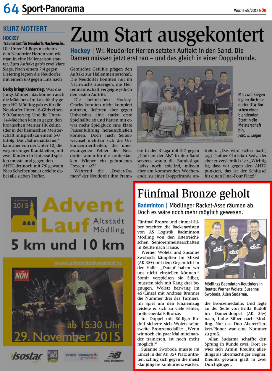FÜNFMAL BRONZE GEHOLT / Mödlinger Racket-Asse räumen ab. Doch es wäre noch mehr möglich gewesen.